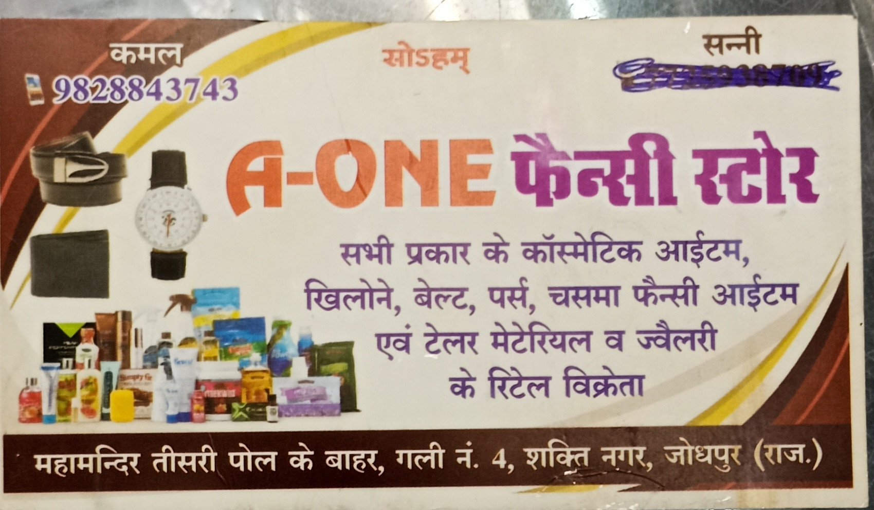 Sabhi prakar ke cosmetic item khilaune belt press chashma fancy item & tailor material was jewellery ke detail vikreta