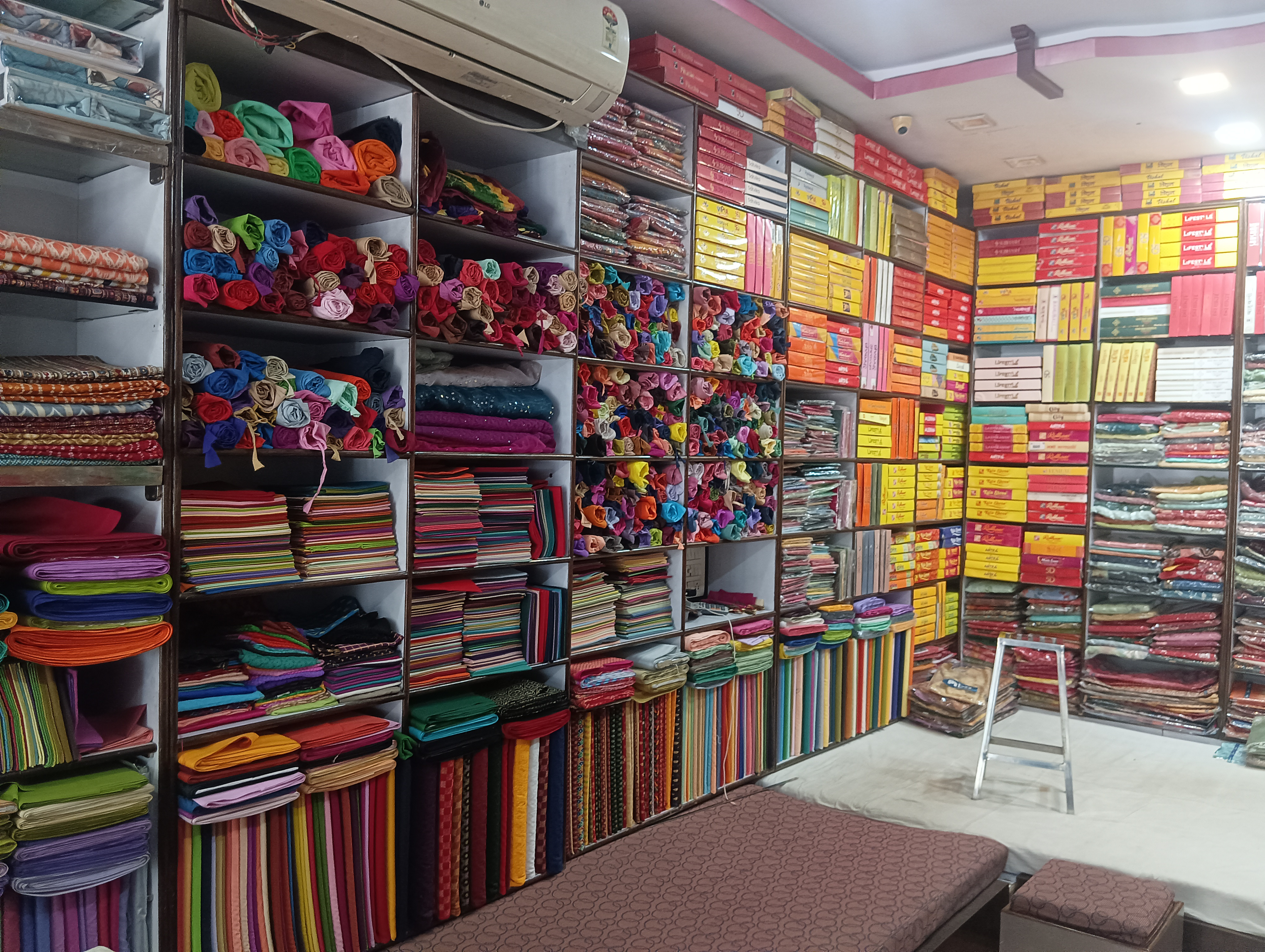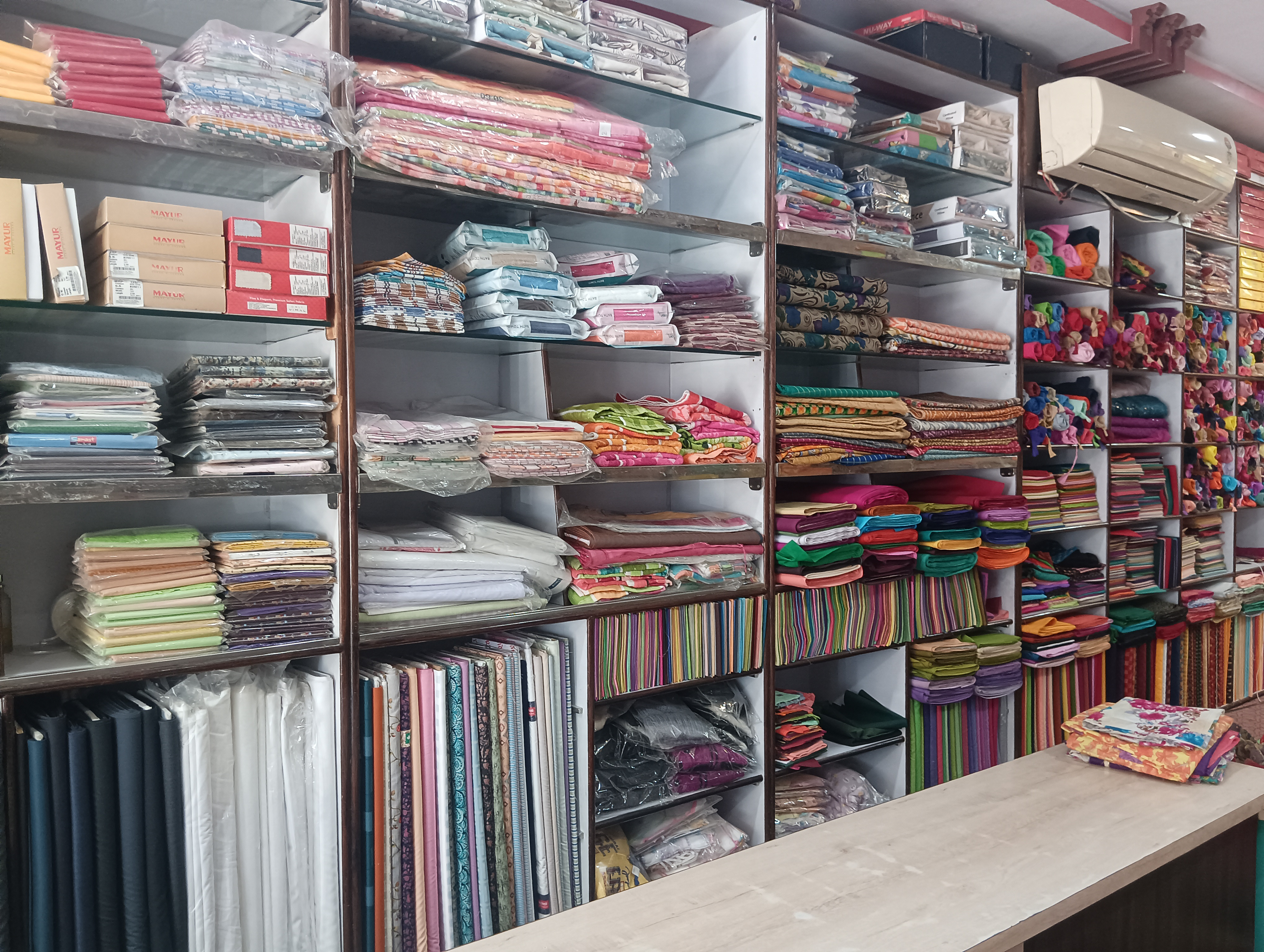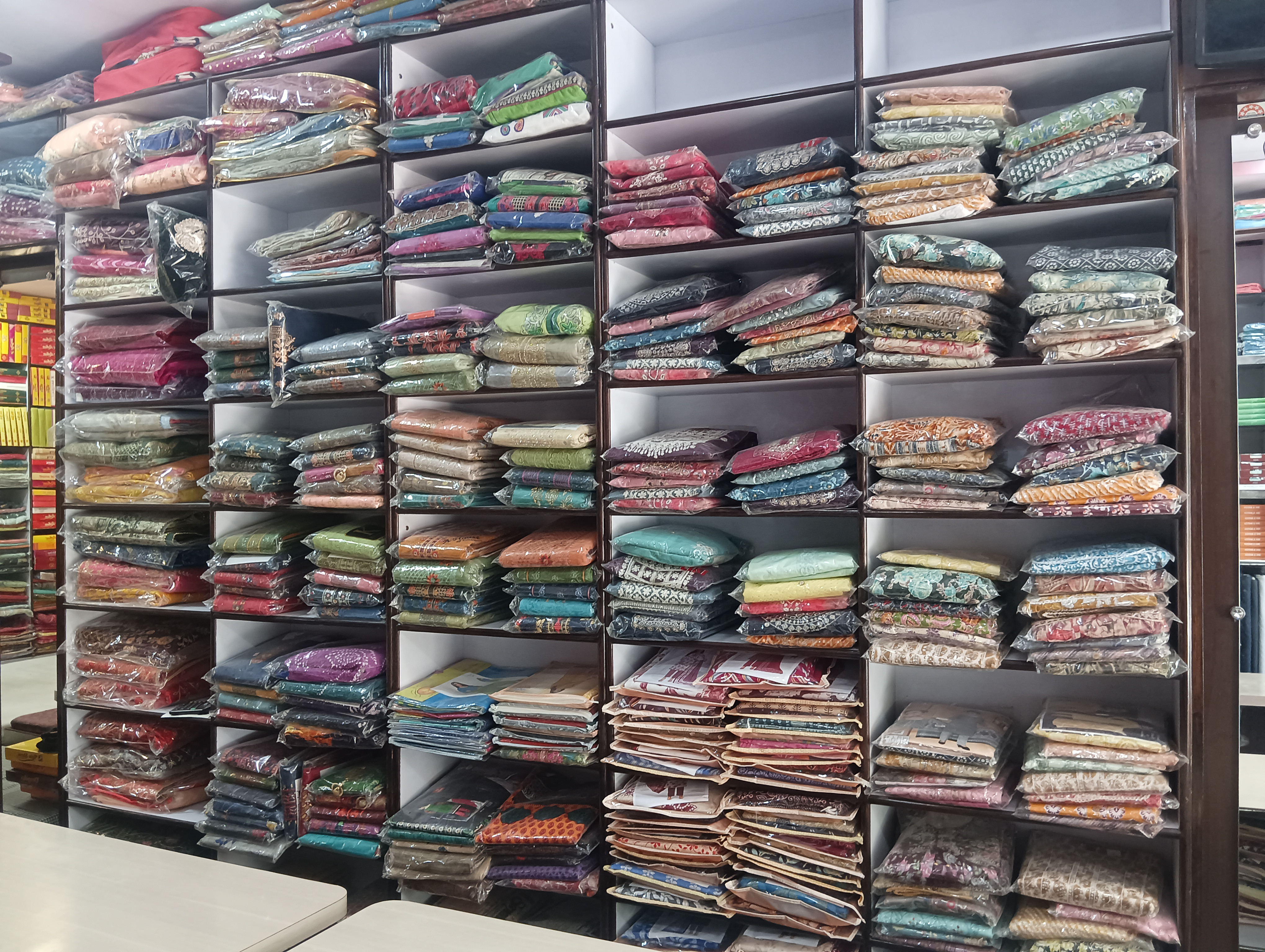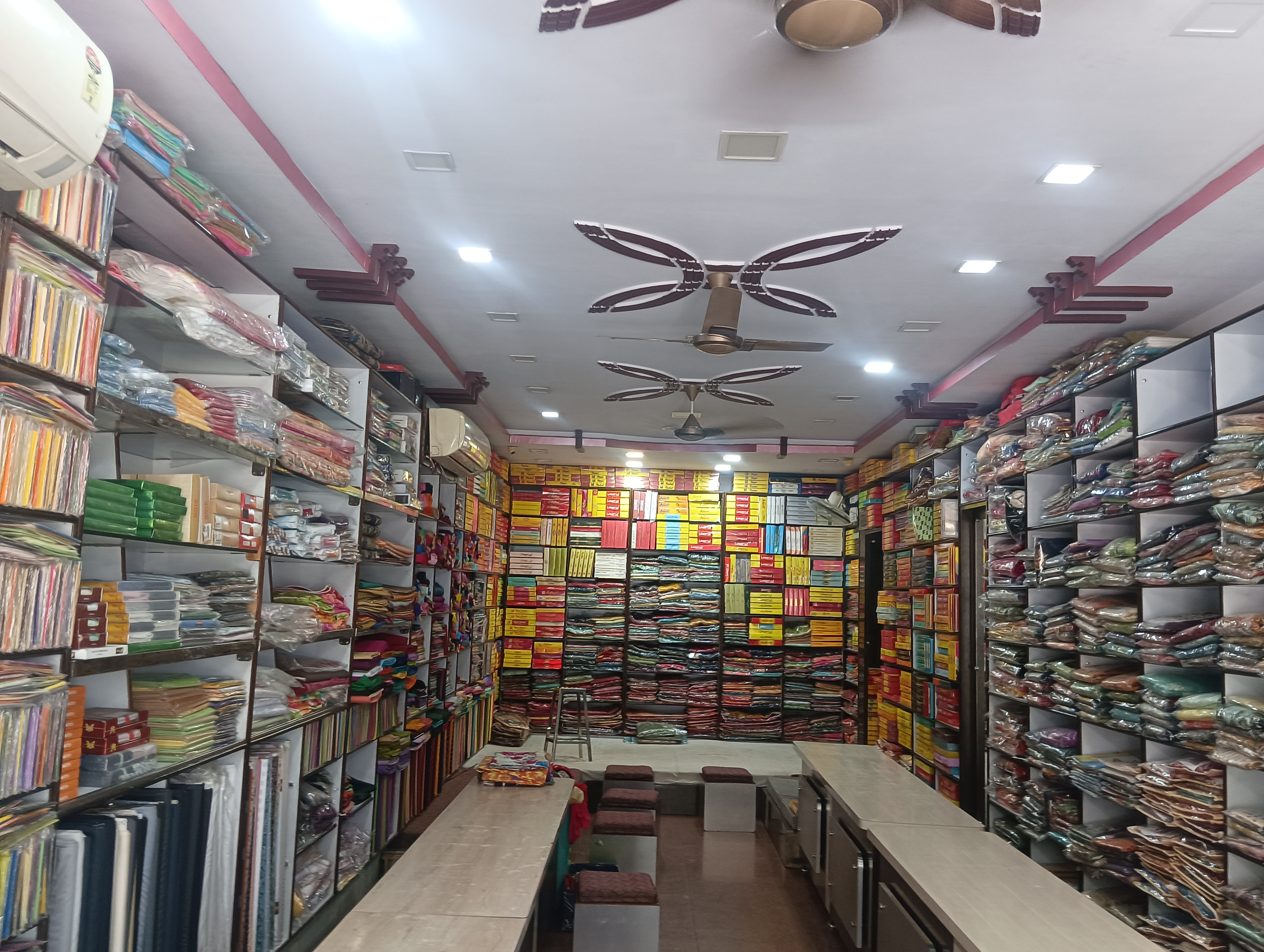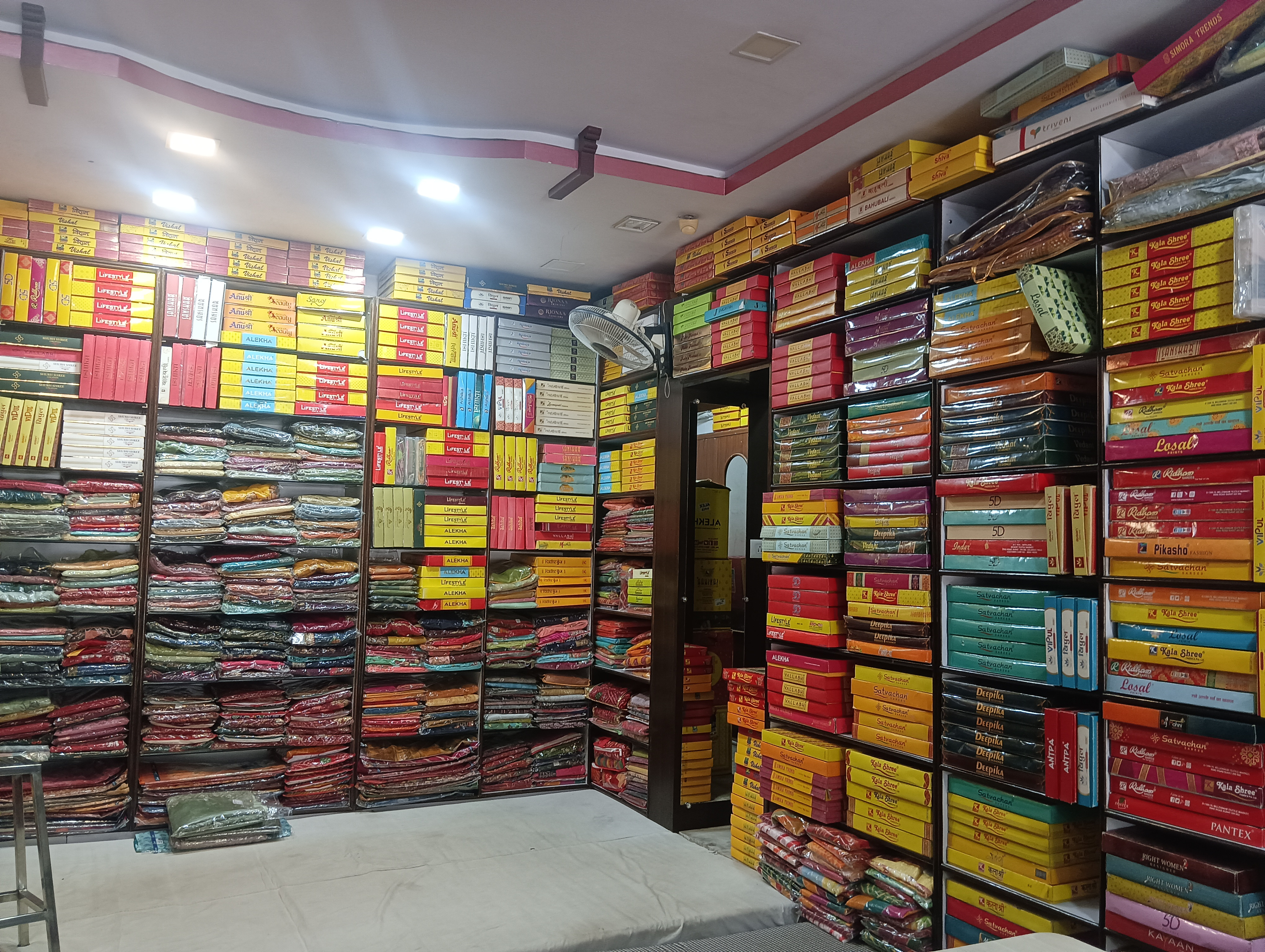 Saree brand - laxmi pati,vishal, vipol, ambika all branded saree available, Lehga suit, foul, ladies underwer, nighty cotton, lagis, kurti, All maching ladies wear Sating & Sutting all brands available Bad seat , taul Gents- pet seat, gents undergarments